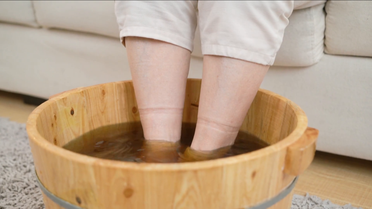 外治:利用中药足浴泡脚,使药物渗透入穴位,打通经络,改善血液循环,使经脉气血运行,达到清热祛湿、舒筋活血的作用。