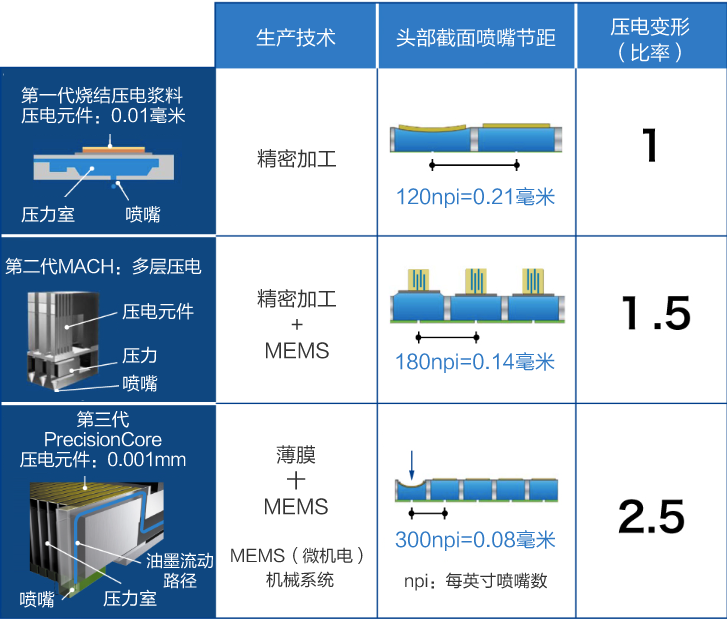 为了实现高精度打印,爱普生不断攻克技术难题,创新性地采用了多层压电装置(MACH技术)。通过堆叠较薄的压电元件,实现了在相同电压下更大的位移,进而提升了喷墨的精确性和响应速度。同时,结合超精密的制造技术、装配工艺及先进的控制策略,爱普生成功打造出了高性能的MACH微压电打印头,为高速、高质量的打印提供了坚实的技术支撑。 copyright dedecms